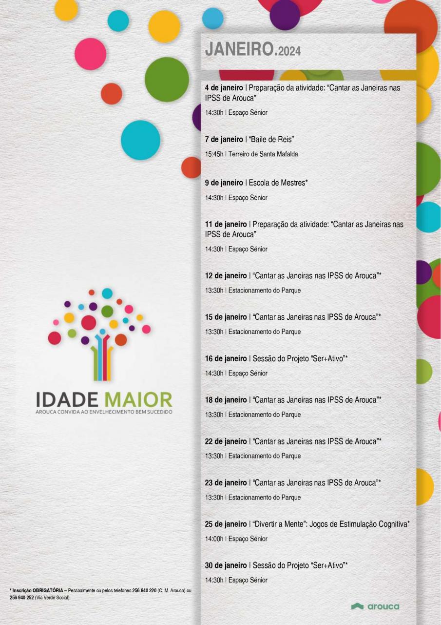 "Cantar as Janeiras nas IPSS de Arouca" ou "“Divertir a Mente”: Jogos de Estimulação Cognitiva", são algumas das atividades que integram a programação do projeto municipal "Idade Maior" para o mês de janeiro.