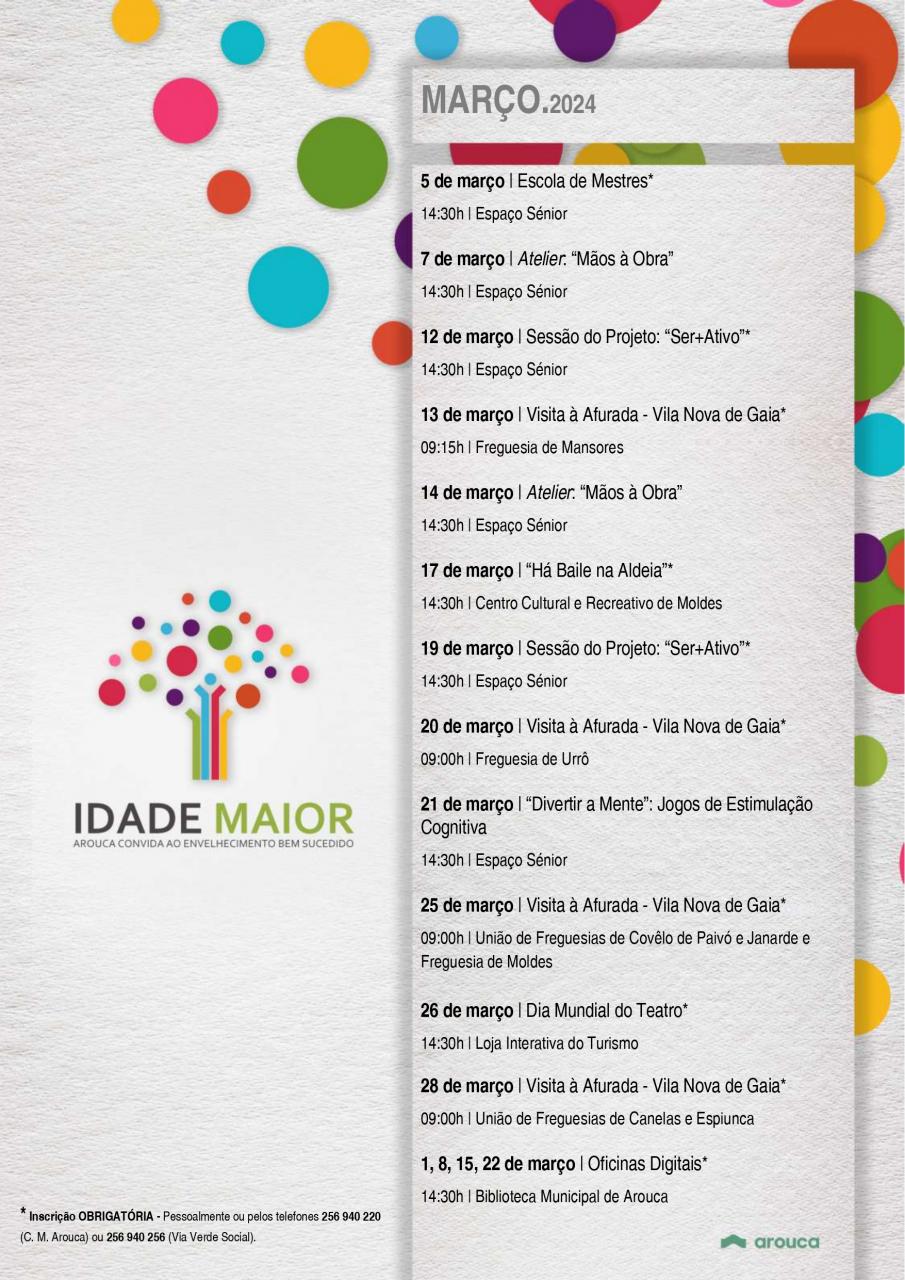 "Há baile na aldeia" ou "“Divertir a Mente”: Jogos de Estimulação Cognitiva", são algumas das atividades que integram a programação do projeto municipal "Idade Maior" para o mês de março.