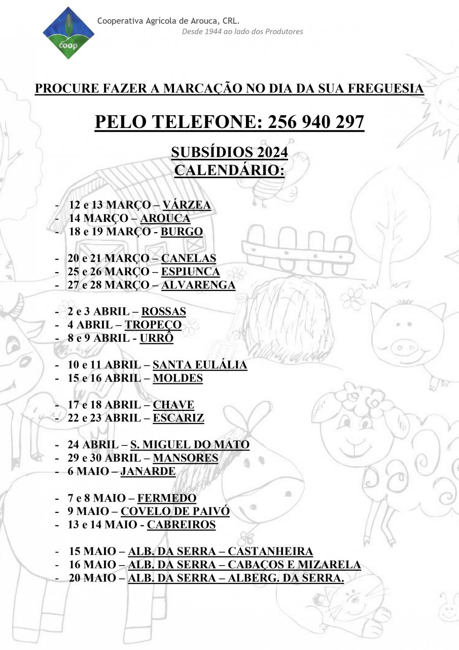 Já pode fazer marcação para a sua candidatura ao pedido único 2024, na Cooperativa Agrícola de Arouca.